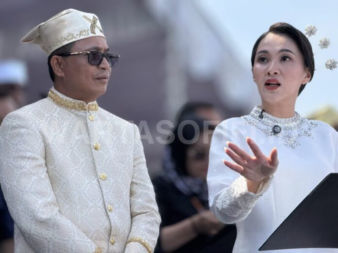 Gubernur Malut Sherly Tjoanda (kanan) menghadiri Upacara Peringatan Hari Guru Nasional 25 November 2025 di Sofifi, didampingi Kadikbud Abubakar Abdullah, sebagai bentuk penghormatan terhadap dedikasi para pendidik di Malut. WARTASOFIFI.ID/Rais Dero